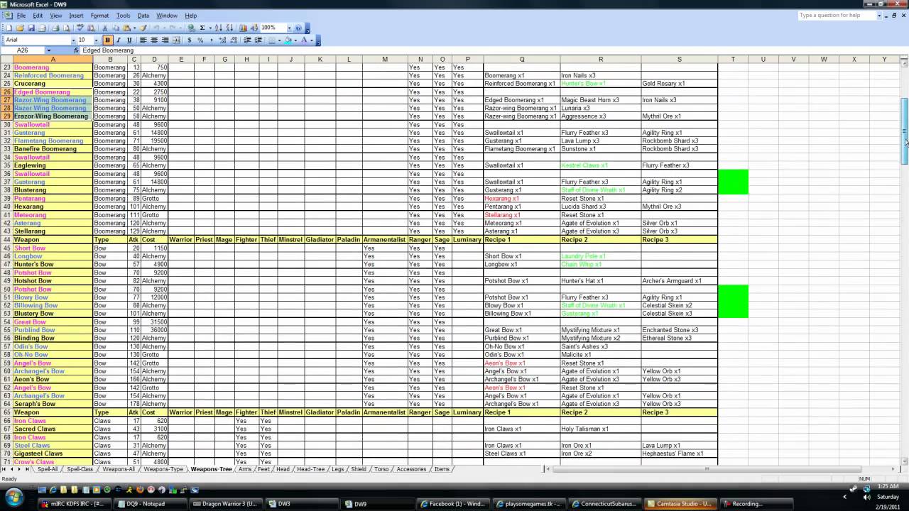 There are a total of 373 items that have a listed recipe out of 470. This is a list of all weapon-based alchemy recipes in Dragon Quest IX. Recipes can be found by searching bookshelves around the world.